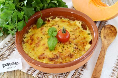 Красивый и легкий в приготовлении гратен из картофеля и тыквы может стать отличным и непривычным гарниром к праздничному столу.