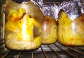 Выложить все в баночку,закрыть фольгойВыпекать 1ч 300С