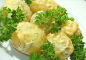 Домашний вариант всеми любимой крошки-картошки. Подойдёт для детских праздников и пикников, можно есть ложечкой или руками вместе с шкуркой, можно оставить классический вариант начинки или экспериментировать.