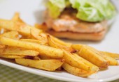 Классический картофель фри, дополненный свежим салатом с легким лимонным привкусом, является отличным гарниром и куда полезнее, чем обычный жареный картофель!