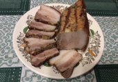 Свинина в луковой шелухе - красивое зимнее блюдо. Его можно с успехом подать на праздничный стол вместе с другой мясной нарезкой.