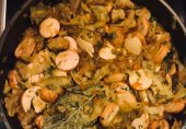 Рис с мясом и квашеной капустой - распространенное деревенское блюдо. У многих народов есть похожие вариации.