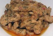 Мягкая, нежная, ароматная печень в пикантном соусе. В печени содержится железопротеид, который помогает организму синтезировать гемоглобин в крови.