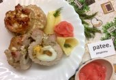 Мясные мешочки с фаршированными яйцами.