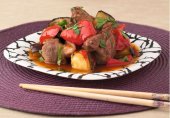 Ло-мейн с гречневой лапшой, говядиной и овощами.