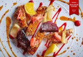 СТЕЙК С ГРАНАТОВО-ЛУКОВЫМ СОУСОМ И ТОПИНАМБУРОМ