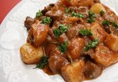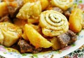 Помнится мне в русской кухне, да в русской печке готовили, точнее тушили мясо с картофелем. Блюдо это всегда присутствовало на каждом празднике и застолье.