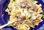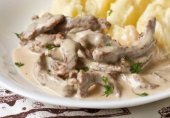 Бефстроганов или «говядина по-строгановски» — популярное блюдо русской кухни, приготовленное из мелко нарезанных кусочков говядины (брусочки), залитых горячим сметанным или сливочным соусом.