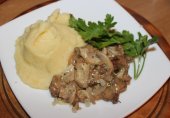 Бефстроганов из курицы готовится так же, как и бефстроганов из говядины, но меньше по времени.