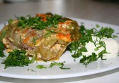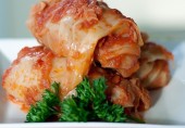 Капустные листы, начиненные говяжьим фаршем, запеченные в кисло-сладком соусе. Вместо муки используется маца, поэтому это идеальное сытное блюдо для Песаха (еврейской Пасхи).