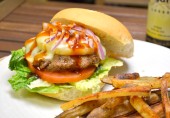 Котлеты для сэндвичей с соусом терияки, ломтиками ананаса и сыра. Положите котлету в булочку для сэндвича, добавьте лук, латук и ломтик помидора, еще немного терияки или майонеза.