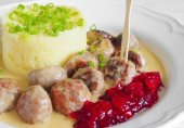 По рецепту подходят разные виды фарша, включая из курицы и другой птицы. Задача - сформировать фрикадельки небольшого размера и залить только-только закипевшим молоком.