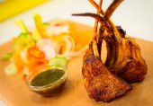 Маринованные бараньи ребрышки с легким салатом из овощей