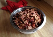 Говяжья грудинка, слегка подкопченная и приготовленная в медленноварке с соусом из перца чипотле, чесноком и специями.
