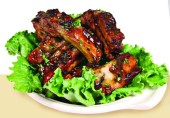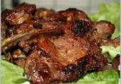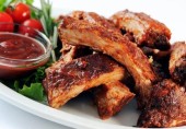 Свиные ребрышки маринованные в соевом соусе с кетчупом, лимонным соком, яблочным пюре и специями.