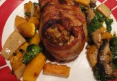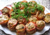 Свиные рулеты с начинкой из перца чили, обернутые беконом со вкусом кленового сиропа. Отличная комбинация сладкого и острого!