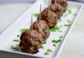 Шарики из фарша баранины с мятой, петрушкой, душистым перцем и корицей, запеченные в духовке.