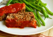 Буханка из говяжьего фарша с тертым пармезаном и специями, смазанная кетчупом с коричневым сахаром и горчицей и запеченная в духовке.