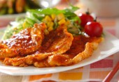 Шницель из телятины с кисло-сладкой пекинской капустой и рисом басмати