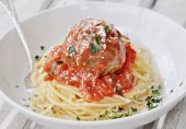 Домашние фрикадельки в вашем любимом ароматном соусе. Можно подавать с любой пастой, но, если вы следите за фигурой - потушите капусту: она отлично сочетается с мясом и соусом.