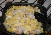Отличие этого простого блюда от традиционного мяса по-французски состоит в том, что картофель кладется поверх мяса.
