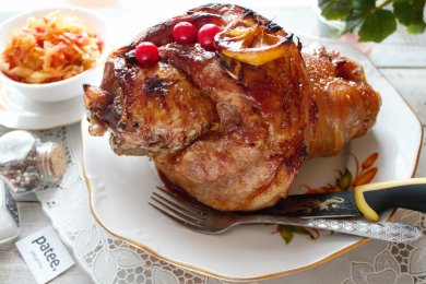 Свиной окорок — сам по себе не является блюдом диетическим и низкокалорийным. Но, если его отварить в пиве с приправами, а потом запечь в духовке, все дурные мысли о том, что ему не стоит оказаться у вас на столе окажутся в прошлом