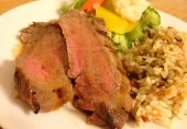Ароматное, мягкое, в меру прожаренное мясо, благодаря несложному маринаду.