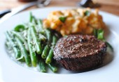 Большой и очень вкусный стейк, в котором сочетаются 2 вида мяса: сочное мясо тонкого края и нежнейшая вырезка.