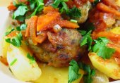 Любителям диетических, полезных, сытных и вкусных блюд предлагаю рецепт приготовления тефтелей с картофелем, луком и морковью.