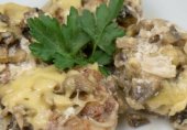 Милое домашнее блюдо, напоминает «ёжики». Но ...... Присутствуют в рецепте и грибы, и чеснок, и сметана, и сыр.