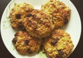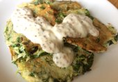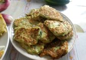 Кабачки натереть на терке. Если кабачки были сочными, то сок сливаем. Добавляем яйцо, перемешиваем, добавляем постепенно муку, зелень, специи.