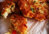 Оладьи с крабовым мясом, чесноком, лимоном и приправами, обжаренные на растительном масле.
