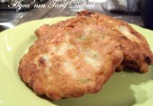 Оладьи с бамией, луком, тертым сыром, пахтой и кайенским перцем.