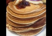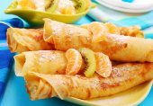 Просто и быстро. Можно использовать молоко, подкисшее молоко, кефир. Начинкой могут стать: обжаренный с луком фарш, сметана с сахаром или без, шоколадная паста, джем, варенье, консервированная скумбрия или икра.