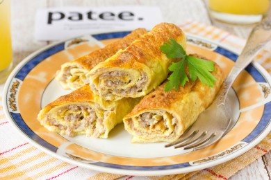 Готовим домашние яичные блины с начинкой из мяса - очень вкусное и сытное второе блюдо! Яичные блинчики с начинкой из свиного фарша в процессе запекания в духовке пропитываются бульоном, в итоге получаем прекрасное сочное и ароматное самостоятельное блюдо!