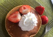 Воздушные панкейки с клубникой, сливками и кленовым сиропом