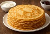 Классические блины — это тонкие, мягкие и ароматные лепешки, приготовленные из простого теста на основе муки, яиц, молока и небольшого количества сахара.