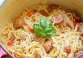 Обычно макароны мы варим, но попробуйте их приготовить тушеными в сковороде с овощами. Очень вкусно и тоже быстро.