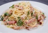 Букатини — толстые макаронные изделия в виде спагетти с дыркой по центру. Такие трубочки длиной 25-30 см обычно варят 9 минут, а затем подают с масляными соусами, панчеттой (бекон) или гуанчиале, овощами, сыром, яйцами и анчоусами или сардинами.