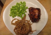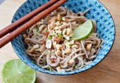 Тайская лапша соба с арахисовым маслом, соевым и рыбным соусом и лаймом.