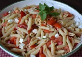 Паста в соусе из свежих помидоров с оливковым маслом, чесноком, базиликом и моцареллой.