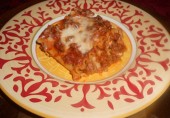 Рулетики из лазаньи с начинкой из сыра, творога и мясного соуса, запеченные в мясном соусе с тертой моцареллой.