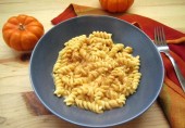 Ваша любимая паста, залитая соусом из молока с тыквенным пюре, чеддером, грюйером и мускатным орехом.