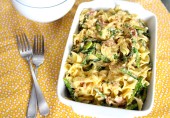Паста, запеченная с куриным филе в сливочном сырном соусе.