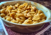 Паста в форме ракушек и куриное филе под сливочным соусом вельвета.