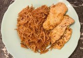 Рецепт из моего вкусного детства)Очень часто мама готовила нам на ужин жареную вермишель и тушила в луке мясо.