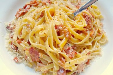 Классическая карбонара идеально подходит для тихого семейного ужина после работы, когда стоять часами у плиты нет никакого желания.