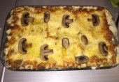 Лазанья из диетического фарша говяжий Самсон 7,5% или куриного фарша 5% жирность. Соус бешамель заменён на более диетический томатный со сливками.