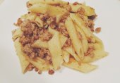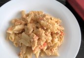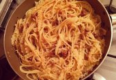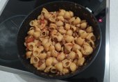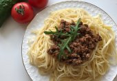 Просто, быстро и очень вкусно. Обычные макароны по-флотски, а изюминка - в соусе. Томатный соус “Долмио” - разбавляем его кипяточком, чуть варим, добавляем зелёный лук, кинзу и петрушку.