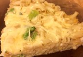 Паста с тертым чеддером, луком, зеленым перцем и молоком, запеченная в духовке.